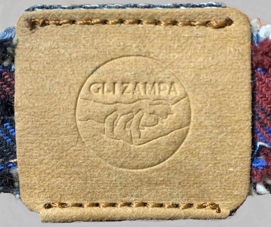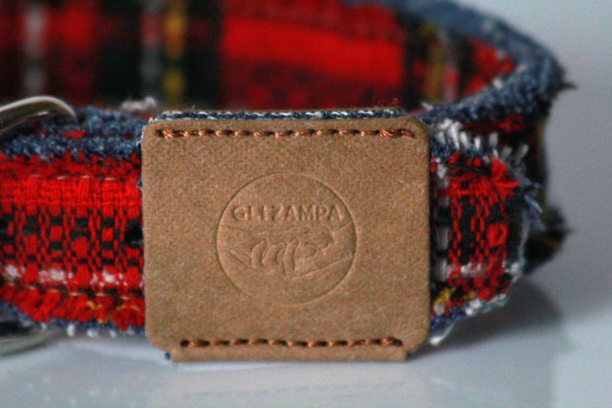 I collari Tartan Jeans GLI ZAMPA sono prodotti artigianali made in Italy, i dettagli sono in JACRON, ecosostenibile, 100% naturale, ricavato da fibre di cellulosa, che viene usato abitualmente per le etichette dei Jeans.
